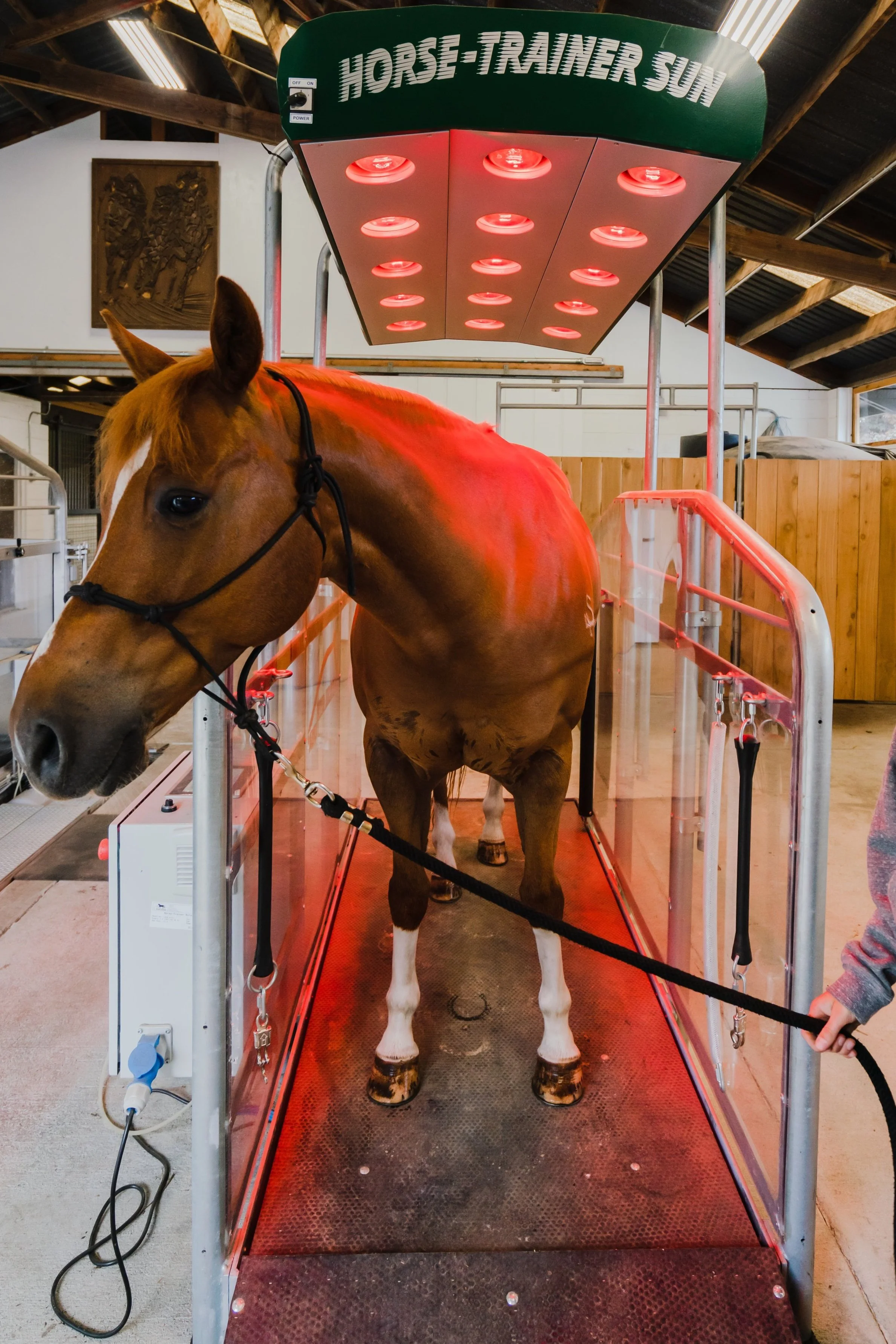 The RELAX & SUN is based on whole-body vibration therapies developed for humans, specifically combating bone density loss and muscle weakness in astronauts exposed to zero-gravity conditions. Research shows the same benefits for horses.